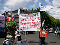 Menjelang dilaksanakannya pertemuan PBB tentang perubahan iklim di Bali Desember nanti, Wahana Lingkungan Hidup (Walhi) Bali melakukan aksi pada Selasa (23/10) di perempatan Matahari Denpasar. Dalam aksinya, sekitar 30 aktivis Walhi tersebut menolak rencana pemerintah Indonesia untuk mengontrakkan hutan pada negara maju.